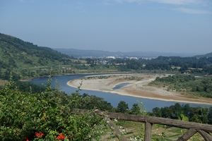 魚野川と信濃川の合流地点 越後川口SA