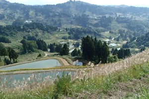 2004年の中越地震の傷跡が残る棚田 山古志村