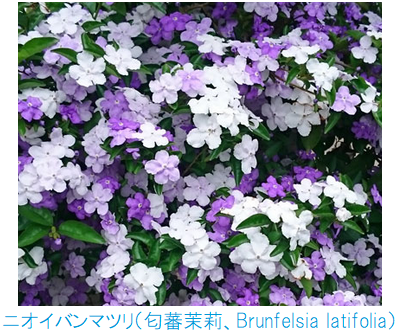 に似た強い香りを放って咲いていた。この花は咲き初めが紫で日毎に淡くそして