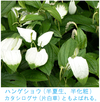 したように見えることと、半夏生の頃に花が咲くということに因んでハンゲショウ