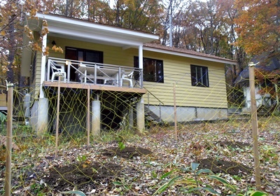 ロッジに到着し、背負ってきた(ホントは車で運搬)苗木、培養土、スコップ、 杭などを運び出し、ブラックベリーの植え付け作業に取りかかる。 ひと仕事終えた後はゆったりと温泉で汗を流す。