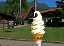 の雑木林を散策、「清泉寮」定番のソフトクリーム。