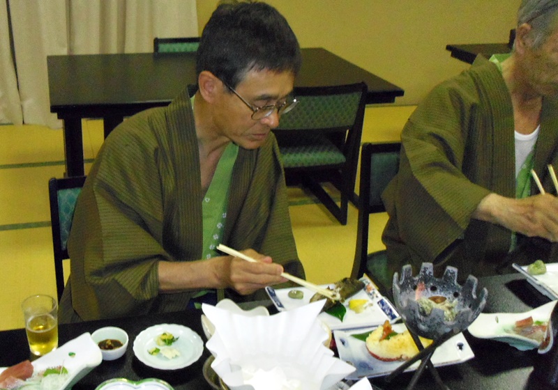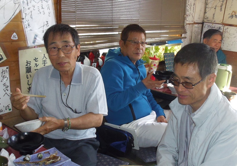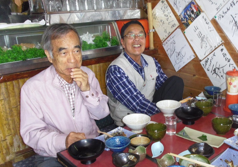 “つぼ焼のサザエと明日葉ラーメンに大島らしいとはしゃぎすすりぬ”